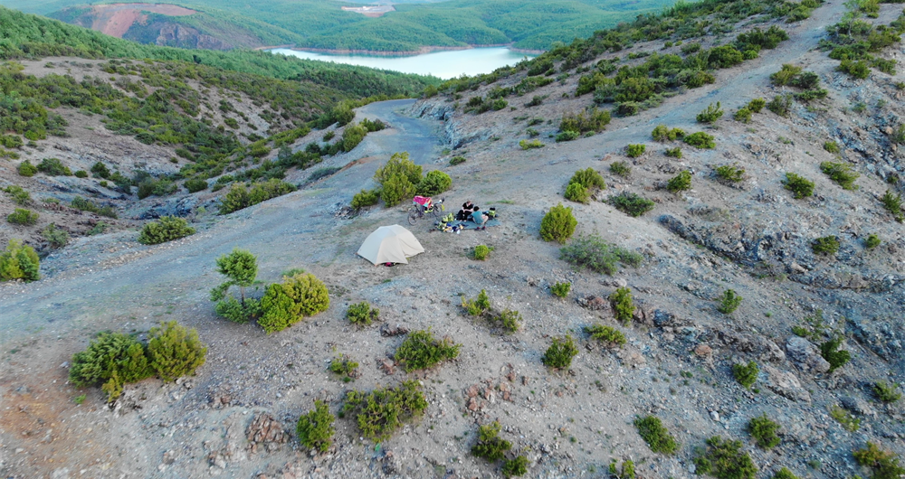 En parlant de la nuit, on trouve un petit coin d’herbe auprès d’un restaurant plutôt cossu qui nous a très généreusement permis de rester dans leur ferme. Le propriétaire est ravi de nous voir et nous fait même poser pour un journaliste local justement présent pour recueillir de quoi écrire un article ! Stéphanie, la tente et le vélo devraient donc apparaître dans une publication albanaise prochainement, stay tuned 😉