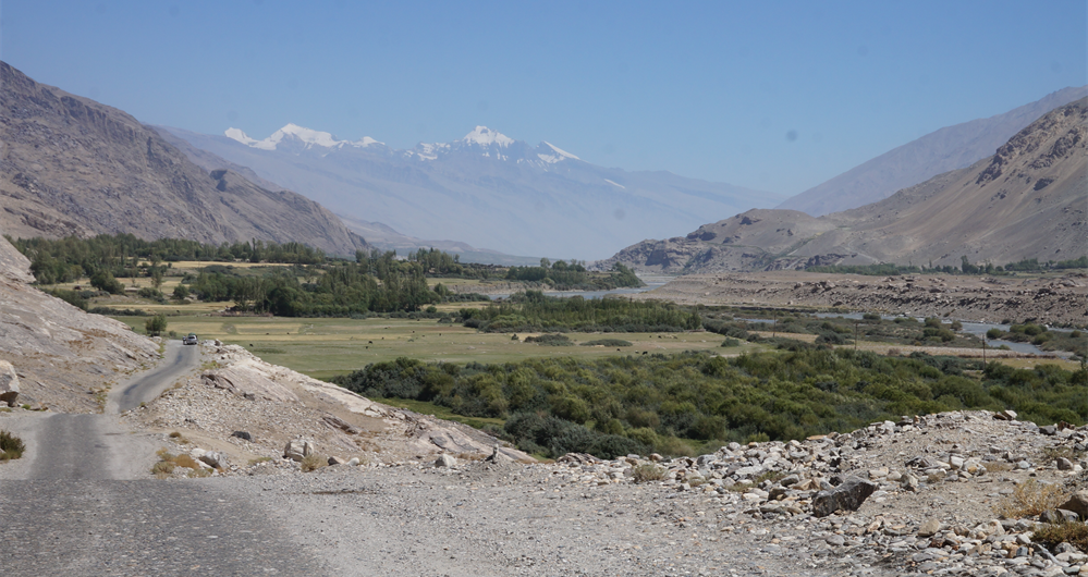 Lorsque nous repartons le lendemain matin le vent est heureusement retombé. Nous longeons la vallée étroite du Panj avec de jolies vues sur l’Afghanistan.