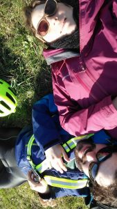 En milieu d’aprem, on est toujours en milieu ultra urbain, nos chances de trouver un bivouac pour le soir s’amenuisent, on décide d’écrire à de potentiels hôtes sur warmshowers. C’est comme ça qu’on est accueillis au pied levé par Lise, Rudy et leurs filles Iana et Nive. On passe une excellente soirée et on repart avec de bonnes idées d’itinéraires vélo !