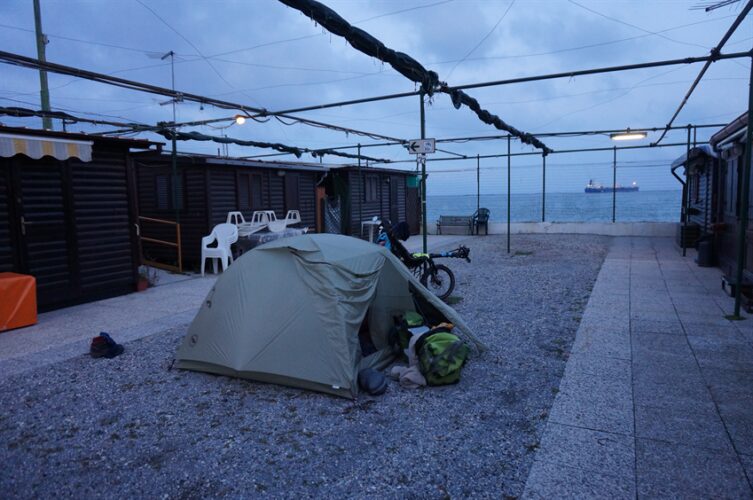 Somme toute ce sont quelques jours très agréables et surtout ensoleillés ! En plus on croisera nos premiers cyclorandonneurs depuis le début du voyage (!). On a roulé avec Lorenz quelques heures et partagé un déjeuner au bord de la mer. Il est écossais et donc n’a visiblement jamais froid, il roulait en simple t-shirt ! Il nous a expliqué qu’il portait alors un pantalon (par 15°) afin “d’augmenter sa résistance à la chaleur”. Ca a fait un choc à Stéphanie…