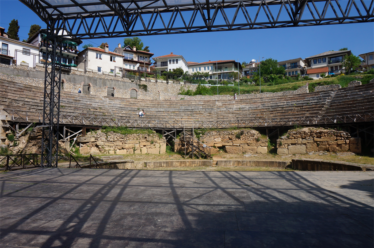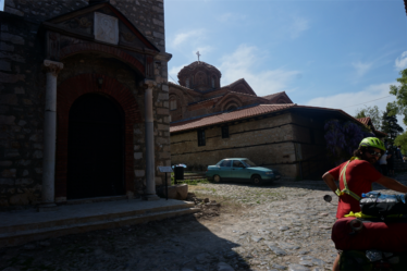Nous arrivons dans l’après-midi à Struga, ville très touristique ! Cela contraste fort avec les zones plutôt isolées que nous avons traversées en Albanie (même si la côte doit être touristique aussi). La macédoine n’ayant pas d’accès à la mer, ce sont ses grands lacs qui s’entourent de stations balnéaires.