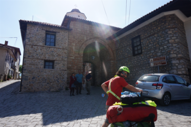 Le lendemain matin nous arrivons donc dans la matinée au poste frontière. Côté Albanie rien à signaler, mais côté Macédoine c’est une autre histoire 😀 Nous arrivons à l’arrière d’une longue colonne de voiture, et premier élément bizarre, nous voyons la 4ème ou 5ème voiture de cette file s’en détacher et traverser la frontière. Ceci éveille nos soupçons, et c’est là que nous remarquons que les conducteurs sont tous agglutinés autour du guichet, et que c’est celui qui s’imposera qui passera le premier ! C’est Stéphanie alors à l’avant qui aura le plaisir de se prêter à cet exercice un peu sportif. On a même vu une personne arriver derrière nous et venir se mettre dans le mince espace devant elle, sans un regard. Après quelques minutes à tendre nos passeports et à se glisser dans tout interstice disponible, ses voisins jugent qu’elle a bien joué le jeu, l’un d’eux reconnaît son mérite et sa ténacité et même s’il serait facile de continuer à lui prendre la place, il indique aux autres que c’est son tour, victoire !