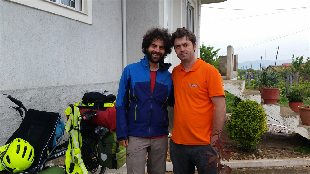 Pour finir ce long article il ne me reste plus qu’à vous raconter notre dernière nuit en Albanie ! Le soir approchant et les emplacements de bivouacs étant plutôt rares dans ce pays bien dense, nous décidons de prendre de l’eau dans un village puis d’aviser. C’est à ce moment qu’un garçon fait signe à un autre que nous parlons français. Ce dernier se met alors à nous parler dans un français parfait !! C’est ainsi que nous faisons la connaissance de David, dont la famille merveilleuse et extrêmement généreuse nous accueillera pour la nuit !