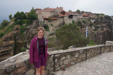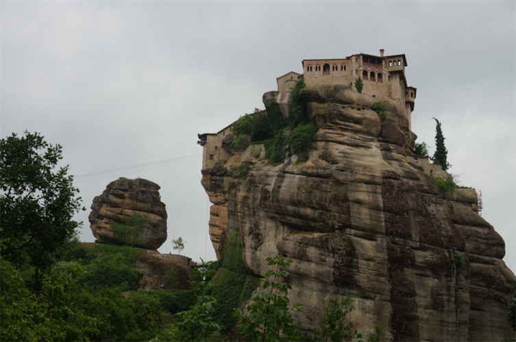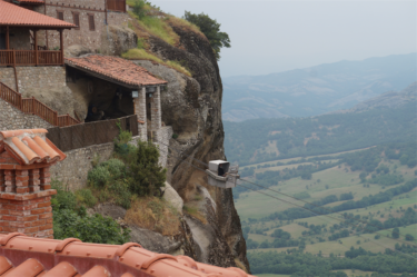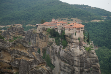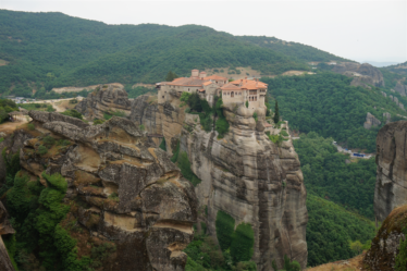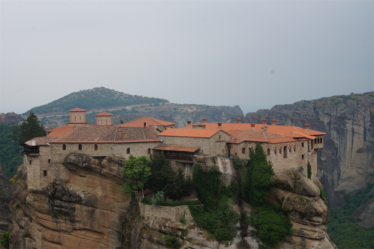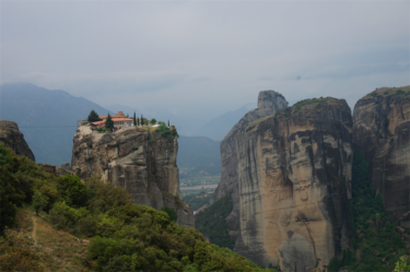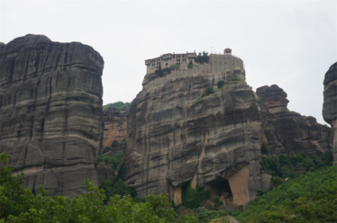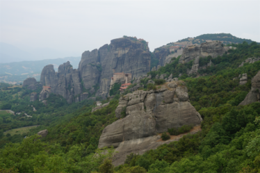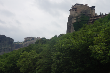 Au delà des rencontres, la Grèce nous a aussi comblés par ses merveilles culturelles. Après un petit dej gargantuesque à l’hôtel (le paradis du cyclo !) de Kalambaka, nous avons passé une belle journée à crapahuter entre les monastères des météores. C’était magnifique ! Je vous laisse en juger par les photos. Nous en avons visité qu’un seul, ce voyage a tendance à nous rendre un peu agoraphobe, on choisit précautionneusement les moments où on se replonge dans les foules de touristes ! 😉