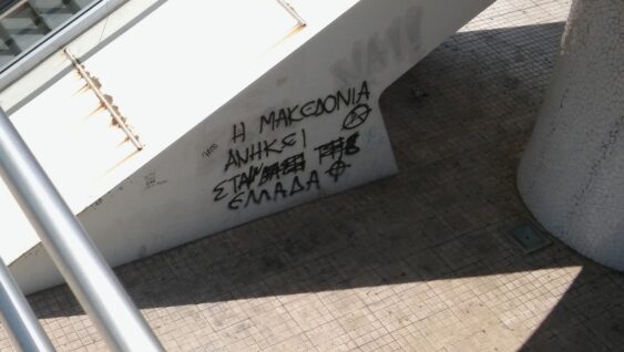 Une dernière chose que j’ai envie de vous partager pour aujourd’hui : les tensions autour de la Macédoine. Petit retour en arrière il y a 10 ans déjà, quand, en Bulgarie, on avait rencontré des personnes qui nous avaient expliqué (très sérieusement) que la Macédoine appartenait en fait à la Bulgarie et que la Bulgarie devrait envahir le pays pour l’annexer. Au cours de nos écoutes de podcasts, on a réalisé que ce sentiment était toujours existant mais aussi que la Macédoine avait un autre “ennemi” à affronter pour entrer dans l’Europe : la Grèce qui refuse le nom même de “macédoine” (Macédoine = Alexandre le Grand = Grèce). Et en effet, on a vu des tags nationalistes qui semblent attester de ce sentiment… La femme qui nous a apporté à diner avait aussi réagi quand on lui avait montré la carte de notre parcours avec les pays traversés en insistant que la Macédoine, c’était bien en Grèce, la région de Thessalonique, et non le pays. Et clairement, elle l’a répété jusqu’à ce qu’elle soit sûre que j’ai bien compris…