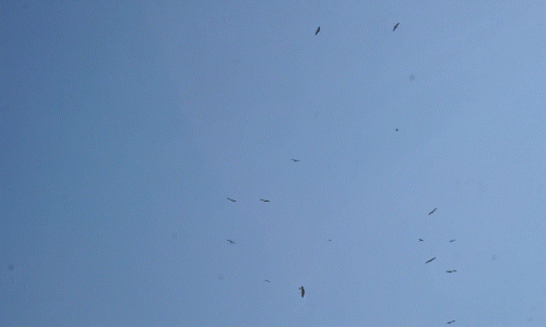 Le jour d’après,on aperçoit une cigogne dans un champ, puis une 2ème, une 3ème… mais c’est que ce champ est rempli de cigognes !! Et encore mieux, une 30aines d’entre elles forment un magnifique ballet dans le ciel ! On ne voit pas grand chose mais ça donne déjà une idée, c’était magnifique !!