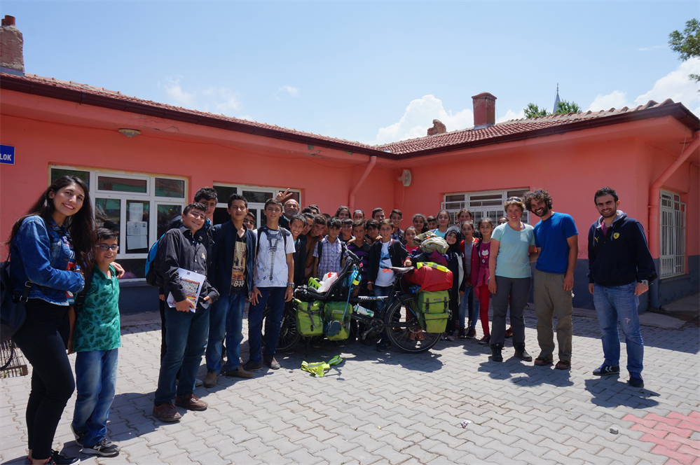 Revenons à nos moutons et à l’école qui nous a accueillis. Après notre discussion, on prend une photo avec les enfants et on retourne à la place faire le plein en eau et prendre une glace (on n’a pas beaucoup mangé avec tout ça !). On réalise qu’on est samedi, on demande aux jeunes quels jours ils avaient école mais nos niveaux respectifs de turc/anglais ne nous ont pas permis d’être très concluants….
