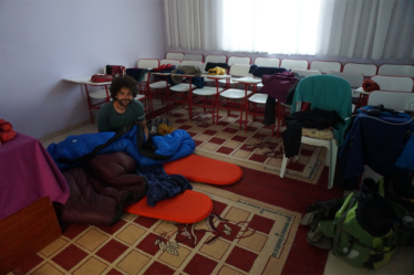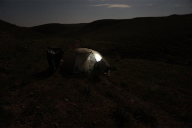 Le lendemain, on bivouaque dans une splendide vallée, des bergers viennent nous voir et nous demandent qui on est. Ils comprennent qu’on est des touristes et donc qu’on ne représente aucun danger pour leurs brebis, ils s’assurent qu’on a bien mangé et nous montrent où est leur maison en cas de problème.