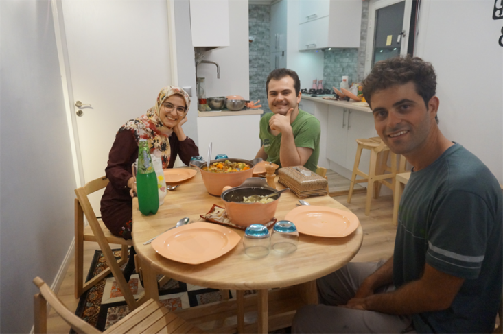 Pour passer du bon temps ensemble, rien ne vaut de partager des repas. On s’est régalés de la cuisine de Faeze, en retour nous avons fait des crêpes et le plat préféré des français… un couscous ! Nous avons appris à jouer (et à perdre) au backgammon, nous avons soutenu l’équipe française pour les 1/4 et 1/2 finales et avons beaucoup ri en voyant la censure iranienne contre les décolletés dans les films étrangers (un haut noir rajouté au crayon, des gros plans étonnants, une plante qui apparaît comme par magie au milieu d’une porte…). Nous avons aussi beaucoup discuté de sujets sociétaux, de politique, d’écologie… Nos avis divergeaient parfois mais c’était toujours très riche !
