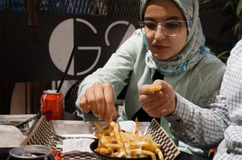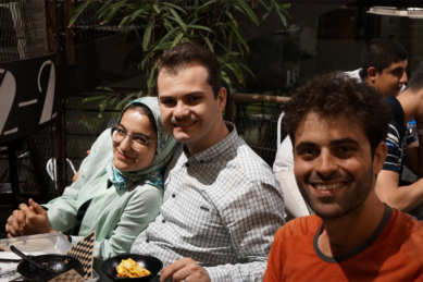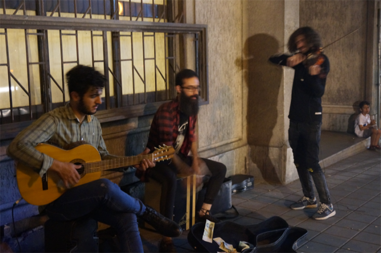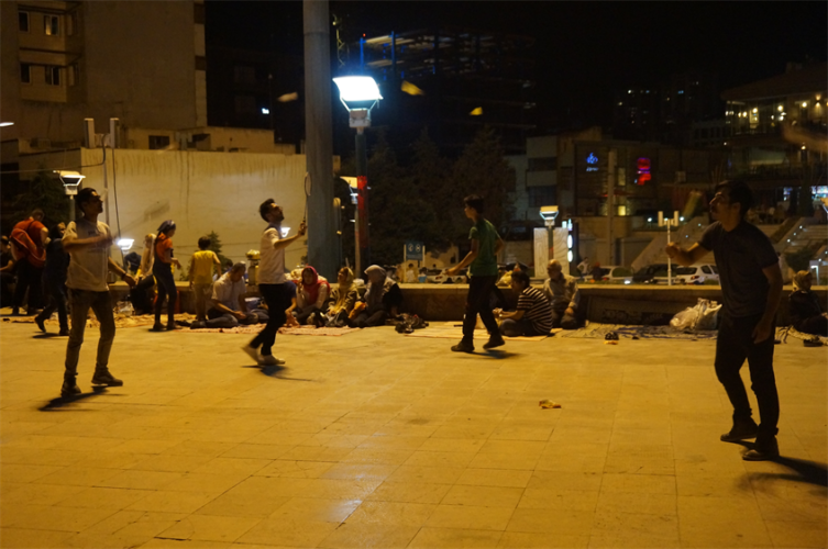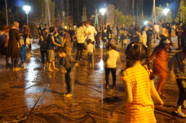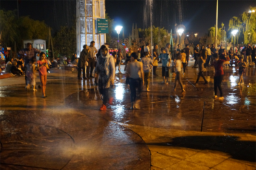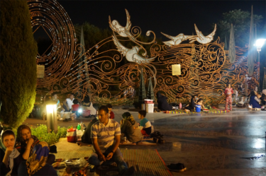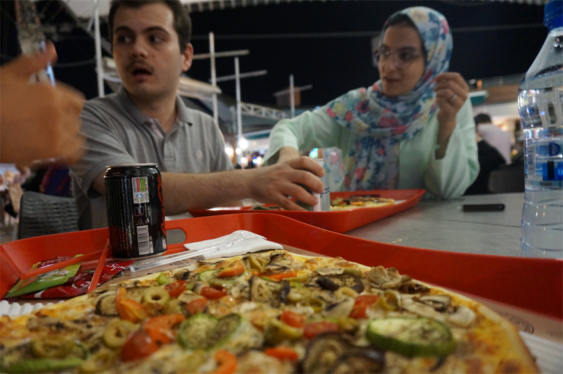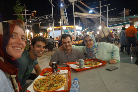 Nous avons donc rejoint un parc rempli de familles en train de pique niquer, fumer la chicha, jouer au badminton… il y avait des enfants partout, ils s’éclataient à jouer dans les fontaines. Il y avait même une scène avec un one man show et des jeunes (hommes) qui dansaient dans les gradins. L’ambiance était très conviviale ! Nous avons été marqués par un grand brassage : toutes les générations étaient présentes (ce n’est pas en France qu’on verrait une mamie manger une pizza à minuit avec sa petite fille dans un parc!) et aussi tous les styles : on a vu une femme en chador jouer au badminton avec son fils, des jeunes femmes en jean, haut près du corps et voile très bas… Ce mélange faisait plaisir à voir !