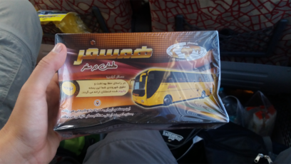 Depuis, on est devenus des pros des bus et on ne monte que dans des bus quasi pleins ! De manière générale, les bus sont assez spacieux, ce qui est agréable au vu des grandes distances à parcourir en Iran. Il est même courant qu’on nous distribue nourriture et boisson. Tout est suremballé par contre, ça fait mal au cœur… (on est très loin du zéro déchet ici :/ )