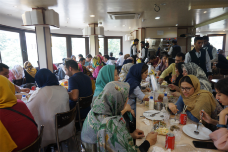 Un homme qui nous avait aidé à traduire le menu m’a indiqué que je pouvais enlever mon voile si je le souhaitais. En effet, en regardant attentivement autour de moi, j’ai vu (avec un plaisir non dissimulé) que plusieurs femmes avaient fait tomber le voile, oubliant les obligations islamiques le temps d’une après-midi.