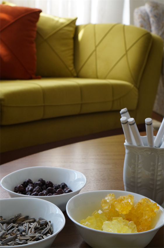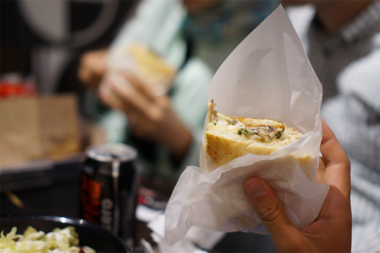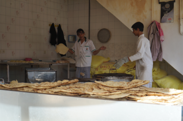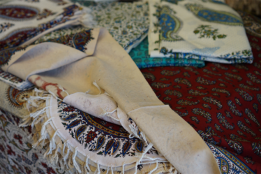 Comme vous pouvez le voir sur les photos, il n’y a pas de table à proprement parler. Nous nous installons sur un tapis et mangeons par terre. C’est la façon traditionnelle de manger et est toujours très pratiqué, encore dans les familles. De grands tapis sont toujours présents dans les maisons, on sort une nappe, la met par terre et on s’installe autour. On s’y fait bien et c’est plutôt pratique si on n’a pas de table assez grande par exemple. Si au retour, on vous invite à la maison et que vous mangez par terre, vous ne serez pas vexés ! 😉