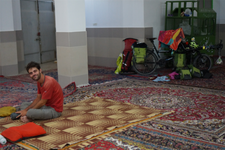 Le soir, nous avons eu la chance d’être accueillis dans une mosquée. On a réussi à éviter de se faire inviter à manger (on ne veut pas trop abuser non plus…) en commençant à cuisiner tôt !
