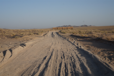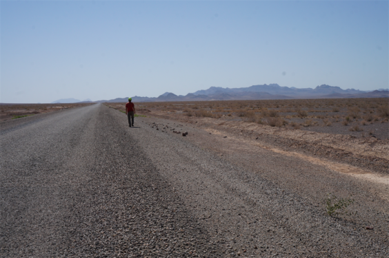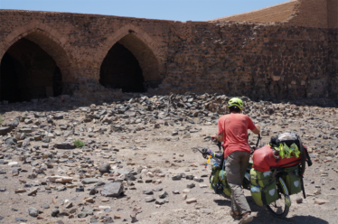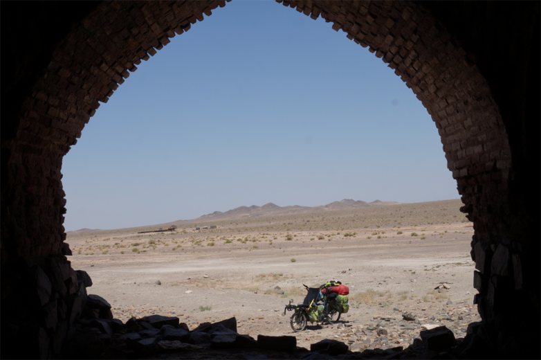 Dimanche matin, lever 5h pour affronter 65km de désert sans village jusqu’au fameux caravansérail de Khargusi. On était bien lourds avec toute l’eau qu’on avait prise, on n’était pas sûrs de trouver de la bonne eau sur place. On savait qu’il y avait des sources que l’on pouvait filtrer mais l’eau était très salée donc finalement, on ne s’en est servi que pour cuisiner et ce n’était pas plus mal. On aura quand même bu 16l d’eau à 2 dans la journée !