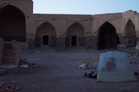 Je vous écris ces lignes depuis un endroit fantastique. Nous sommes au milieu du désert entre Ispahan et Yazd dans un grand caravansérail abandonné. Nous allons y passer la nuit, l’endroit est magique… On ne peut s’arrêter d’imaginer les lieux tels qu’ils étaient il y a quelques centaines d’années, alors qu’ils fourmillaient d’activité et étaient remplis de caravanes… Clairement, la route de la soie, on y est !