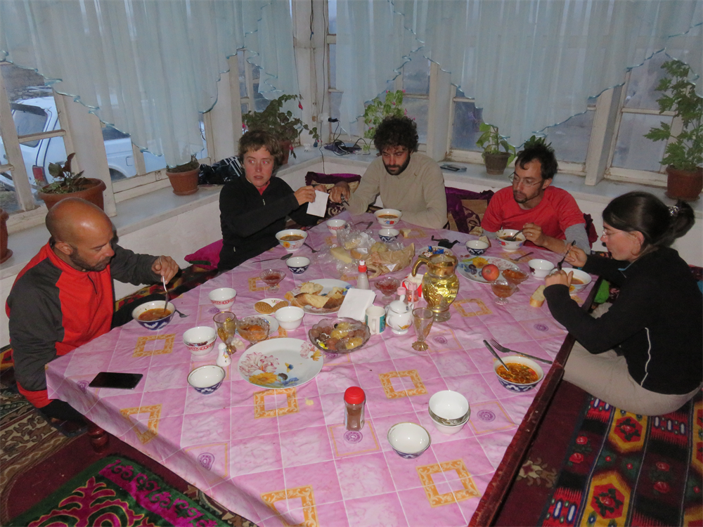 On arrive à Sary Mogol le 12 septembre, avec un peu d’avance…mais exactement en même temps que Claude et Steph ! Sans s’être concertés, on atterrit dans deux guesthouses différentes, mais comme on se fait prendre à partie dans la nôtre par un hongrois raciste on est contents d’en changer !