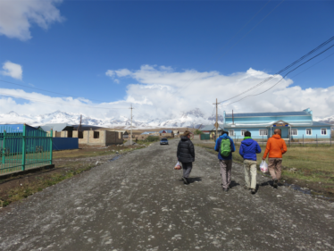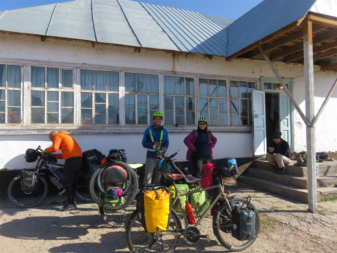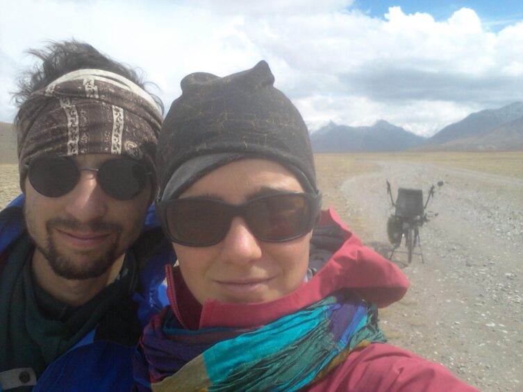 Le lendemain, on emprunte leur tandem pour se rapprocher du pic Lénine… Et on doit faire un pitoyable 5 km/h ! Sur un faux-plat caillouteux et un sacré vent, certes, mais il faut avouer que c’est physique le vélo ! Au retour on est un peu rassurés, en descente on avance bien ! On rentre juste avant la neige !