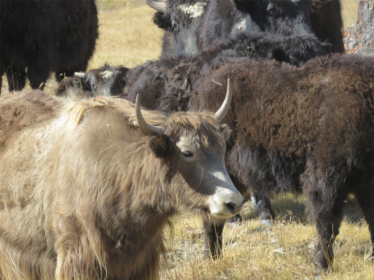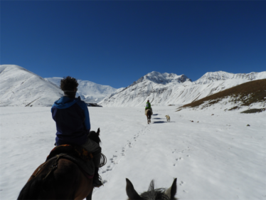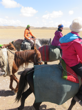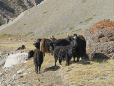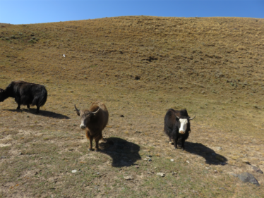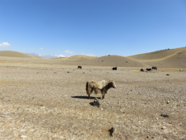 Au retour vers le camp de base, Johanna réussit à convaincre nos guides de nous emmener voir un troupeau de yacks en train de brouter. Puis c’est le retour au camp, on est bien fatigués ! Baptiste se débrouille comme un chef avec son cheval, on dirait qu’il y prend goût !