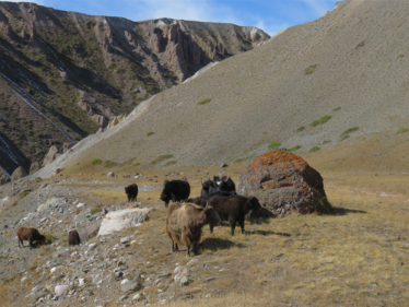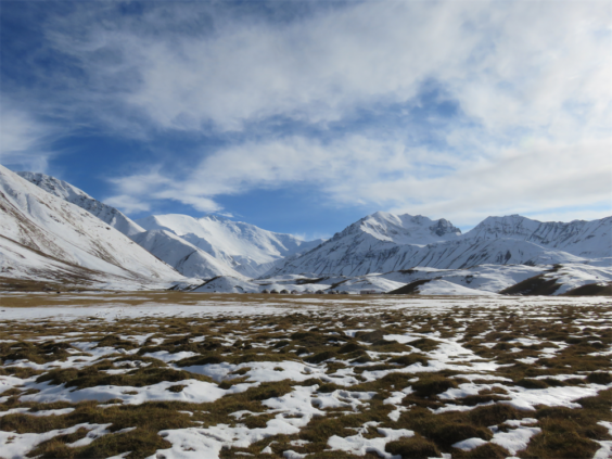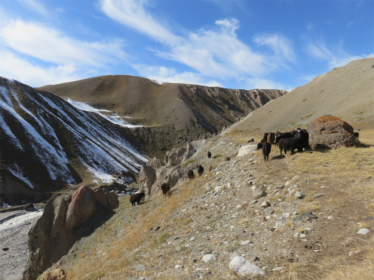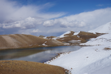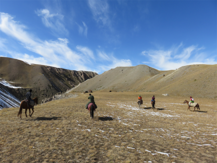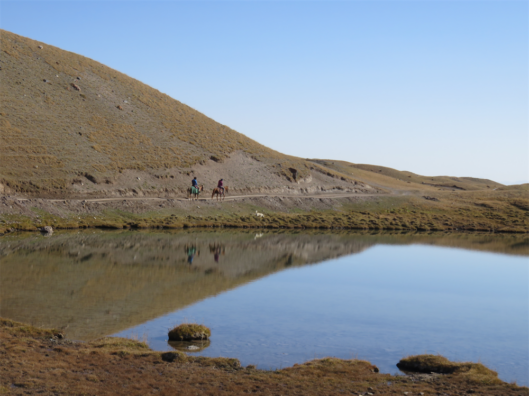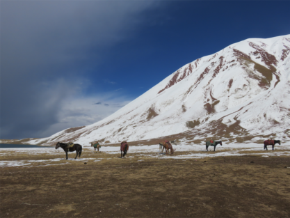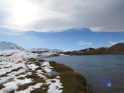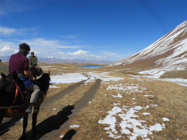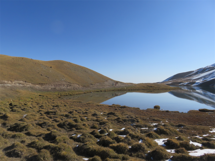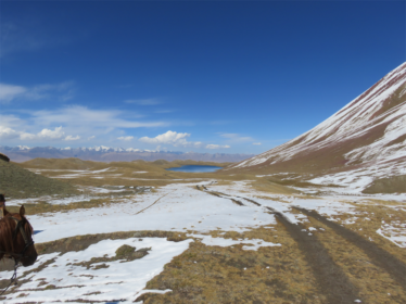 Le rendez-vous étant fixé dans le sud du Kirghizistan trois semaines après notre arrivée, on en profite pour parcourir le pays. On commence par une traversée à pied éprouvante mais splendide du Kirghize Range, au sud de Bishkek, pour se rapprocher du lac Song-Köl. C’est un lac à 3000m d’altitude, entouré de steppes et de montagnes. Il y fait très froid quand on y arrive, d’ailleurs les bergers qui passent l’été au bord du lac avec leurs troupeaux sont en train de redescendre. On va voir un autre petit lac dans le coin, le lac de Köl Ukok, beaucoup moins touristique et très joli aussi.