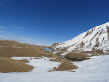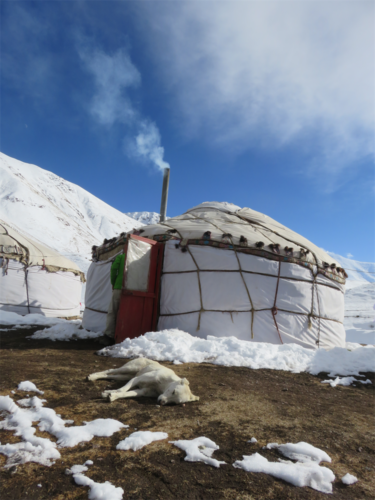 L’arrivée au Tulpar lake est magique, il y a de très nombreux lacs, plus ou moins gelés ou transparents ! On dort dans un camp de yourtes au niveau du plus grand des lacs.