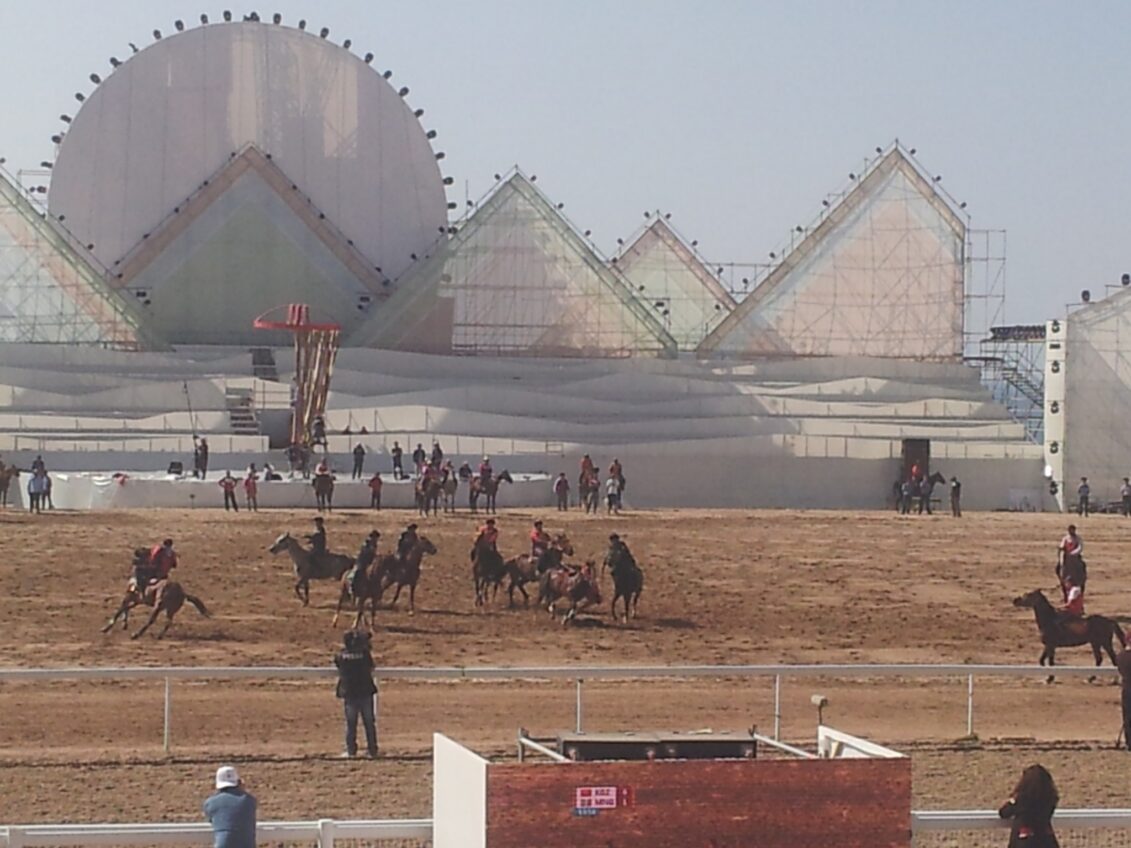 Après ces randos, on est un peu crevés et on profite des World Nomad Games pour se reposer ! Ce sont des sortes de jeux olympiques nomades qui ont lieu tous les deux ans au moins de septembre. C’est l’occasion pour nous de voir jouer au kok boru, sorte de bouzakhi local. Il y a même une équipe française ! Après renseignements, on découvre que l’équipe française est à la base une équipe de horse-ball, mais que comme ils ont importé le horse-ball au Kirghizistan ils ont trouvé que c’était honnête de montrer qu’ils s’intéressaient aussi au kok boru, le sport traditionnel… Et de fait ils s’en sortent pas mal ! La principale difficulté semble être de soulever la carcasse de chèvre du sol (35 kg quand même). À la fin, ils semblent avoir trouvé l’astuce : laisser l’adversaire la ramasser… puis lui piquer quand elle est à hauteur de cheval ! Bref, ils se défendent bien et finissent par perdre avec honneur.